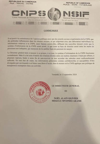 The National Social Security Fund of Cameroon (CNPS) is facing severe criticism after issuing a communique denying reports of a massive cyberattack that allegedly exposed millions of personal records.