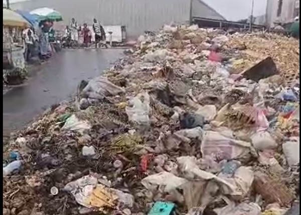 **Douala, Cameroon –** In a staggering display of negligence, the Grand Hangar Market in Bonabéri has been engulfed by a mounting pile of waste, rendering the primary access road impassable for over a month.