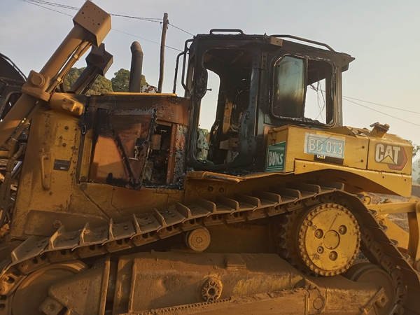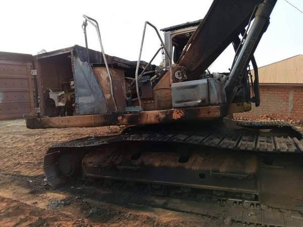 The attack, which occurred in the early hours of Thursday, January 25, 2024, resulted in the burning of two heavy-duty road equipment belonging to the BUNS Construction company, tasked with executing the project in the area. Other vehicles in the company's parking lot suffered extensive damage, with their tires, windshields, and engines shattered by bullets.