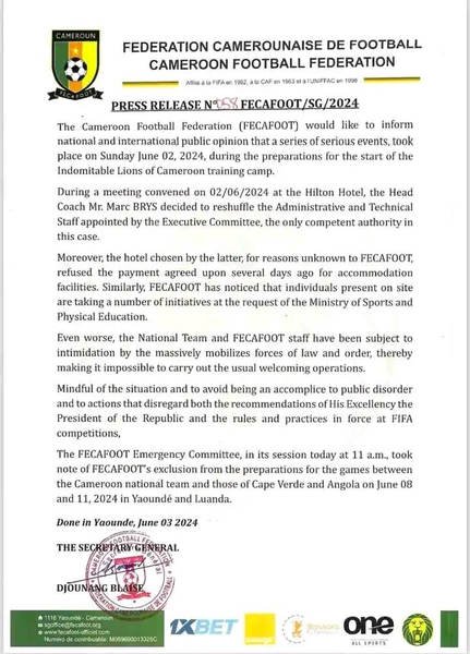 FECAFOOT’s official press release sheds light on the recent developments surrounding the Cameroon national football team.