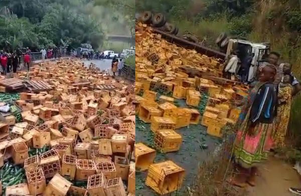 A truck belonging to a brewery company recently met with an unfortunate accident, resulting in the spillage of its entire contents along the treacherous Falaise De Dschang, commonly known as the Dschang Cliff.